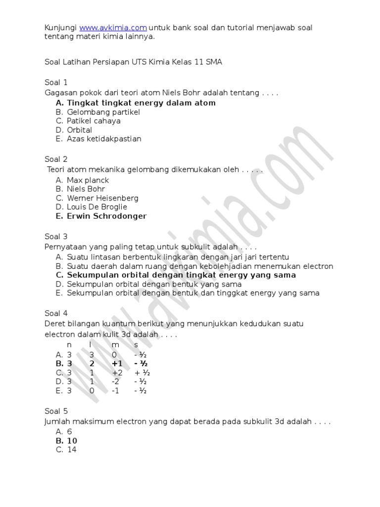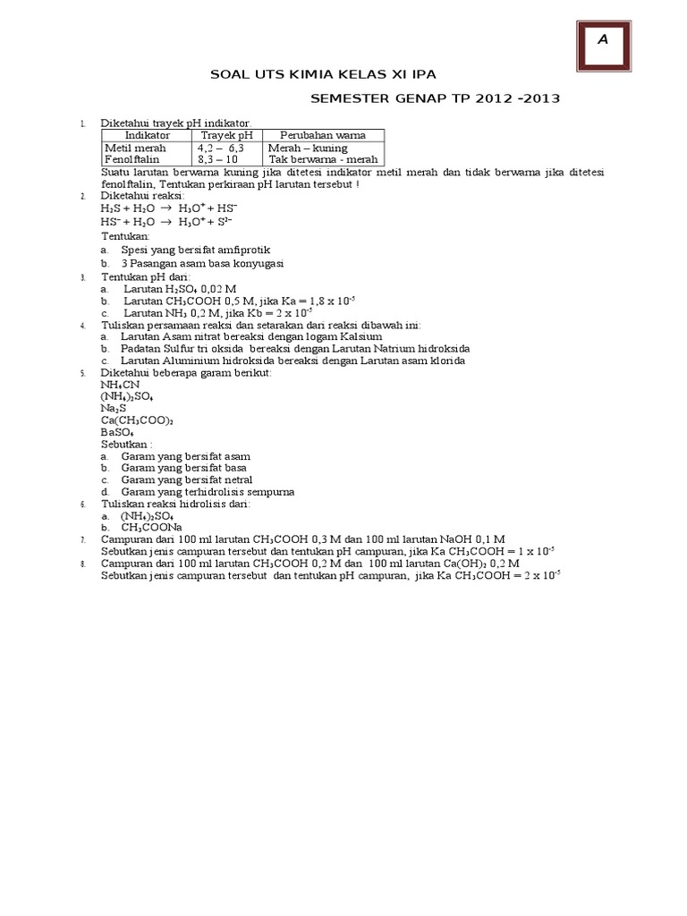 Contoh Soal Kimia Uts Kelas 11 - Dunia Sosial