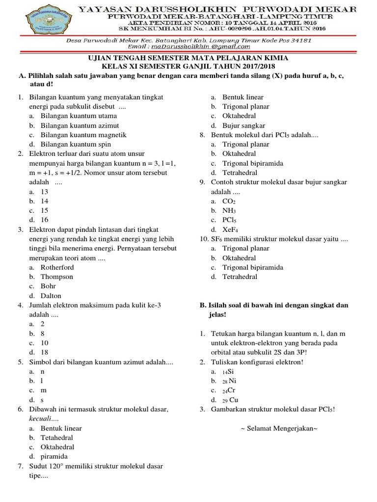 DOC) Soal Pilihan Ganda Kimia Kelas X Semester 1 & 2 | Irfan Kamal Firdaus - Academia.edu
