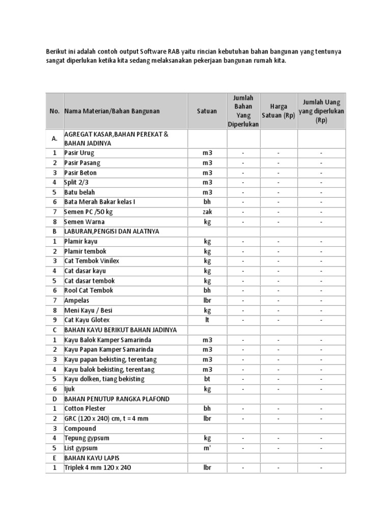 Software penghitung bahan bangunan (RAB). Bs di cetak | Shopee …