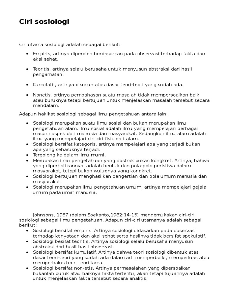 Ciri-Ciri Sosiologi Sebagai Ilmu Pengetahuan Yang Bersifat Empiris …