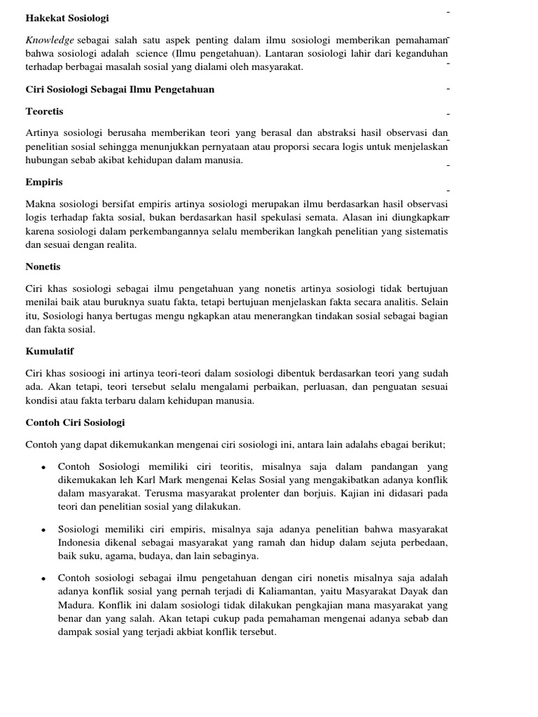 Sifat Dan Hakikat Sosiologi
