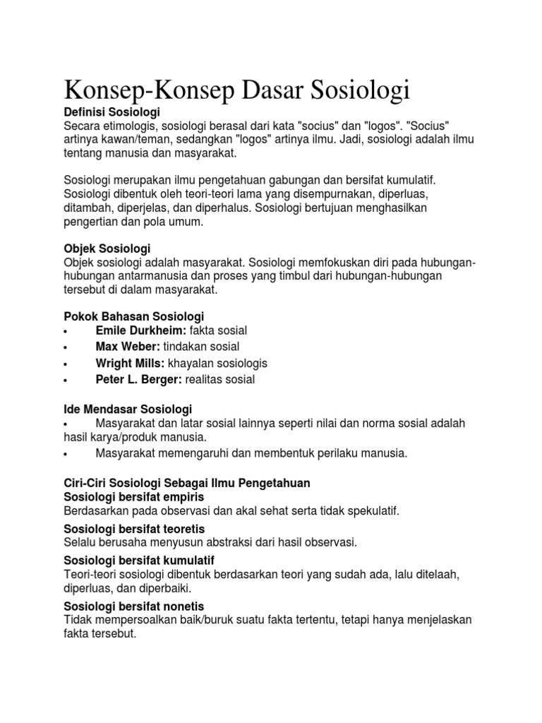 Konsep-Konsep Dasar Sosiologi