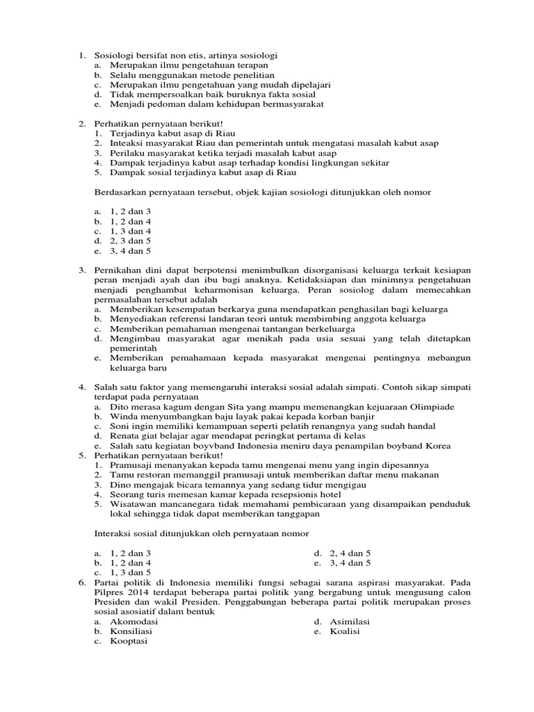 Soal Try Out UN Sosiologi dan Kunci Jawaban (2016) - [PDF Document]