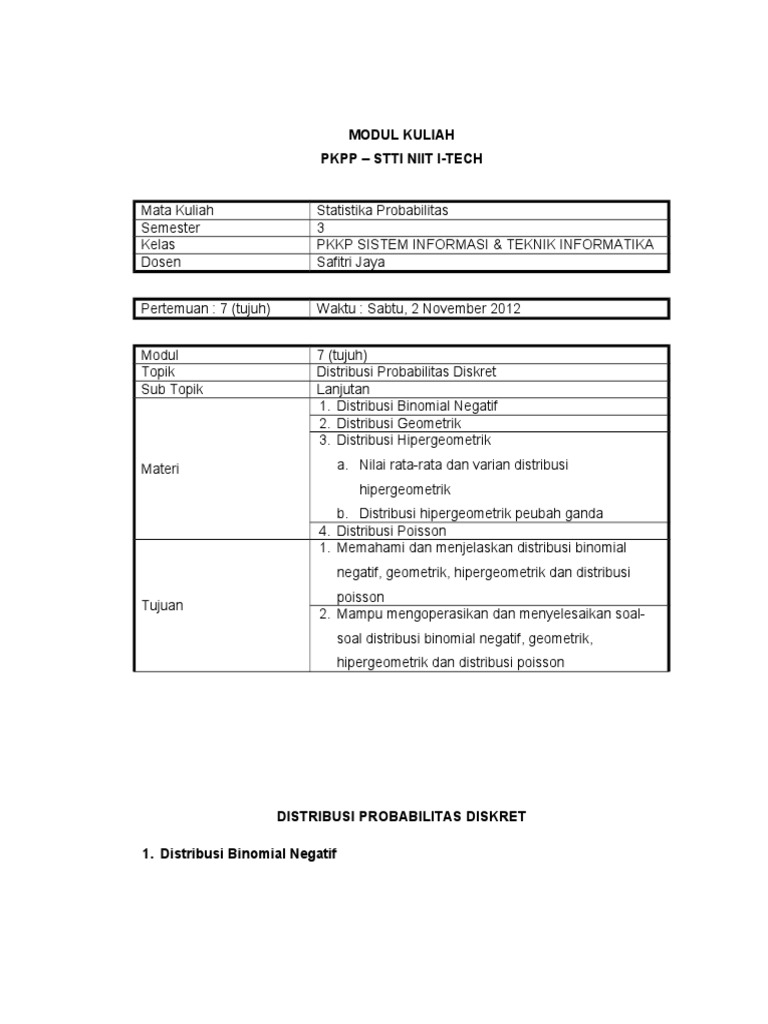 DOC) MODUL KULIAH STATISTIK PROBABILITAS – PKKP-STTI NIIT “I-TECH …