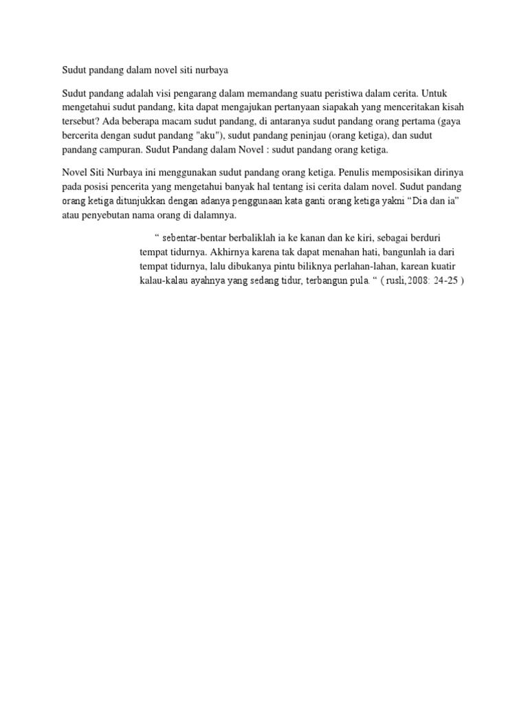 Sudut Pandang Dalam Novel Siti Nurbaya