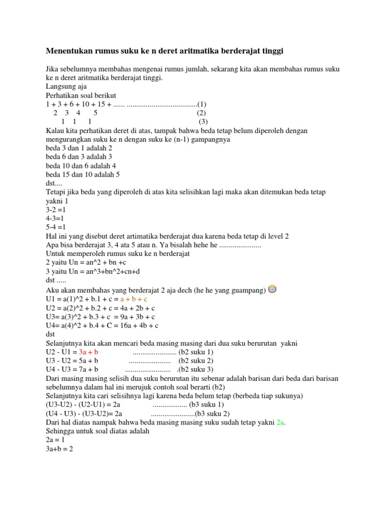 Menentukan Rumus Suku Ke n Deret Aritmatika Berderajat Tinggi