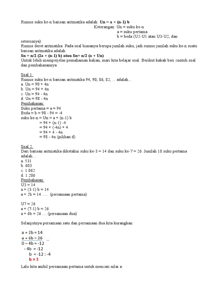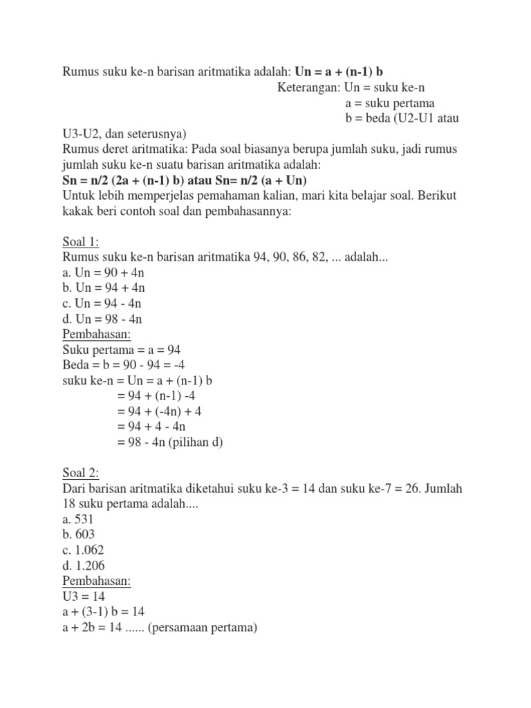 Contoh Dan Pembahasan Memilih Suku Ke-N Barisan Aritmatika …