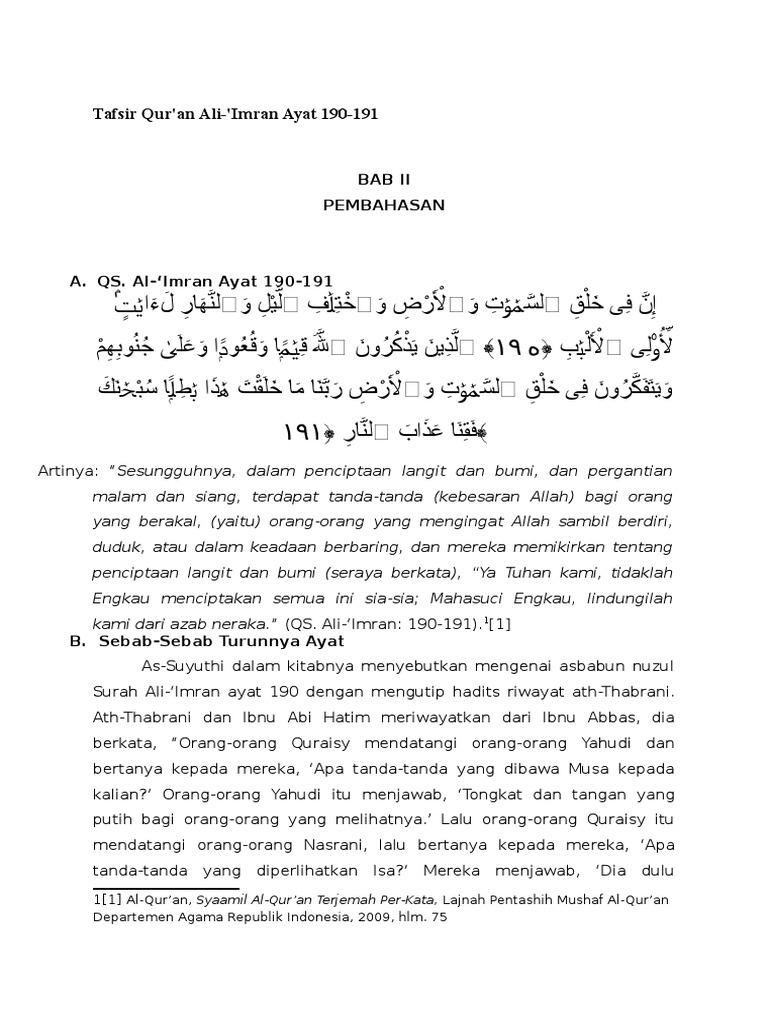 Quran Surat Ali Imran Ayat 190 191 - Kumpulan Contoh Surat
