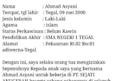 Surat Ijin Orang Tua Untuk Melamar Pekerjaan - Contoh Seputar Surat