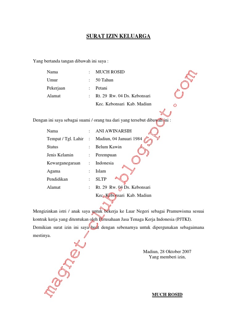 Surat Izin Keluarga Bekerja Ke Luar Negeri