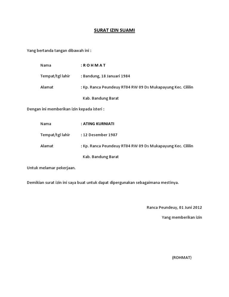 Contoh Surat Ijin Suami Aneka Contoh – Cute766