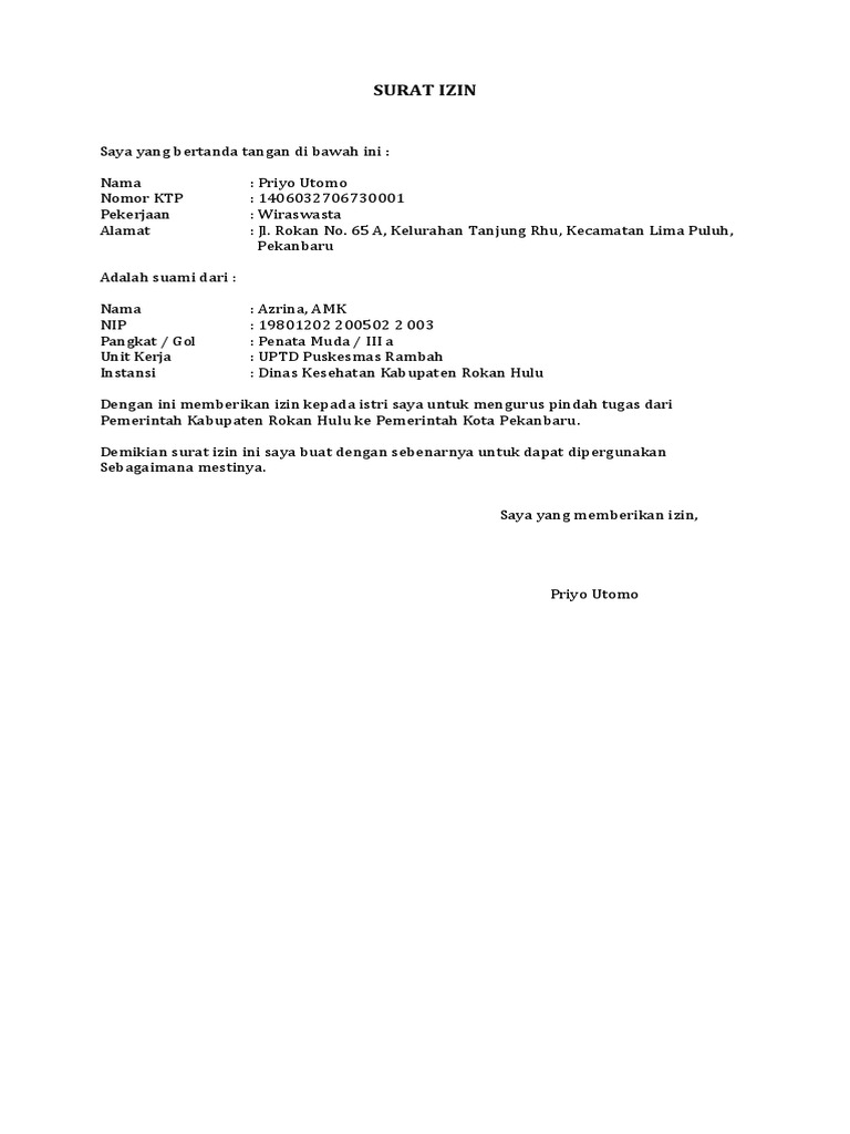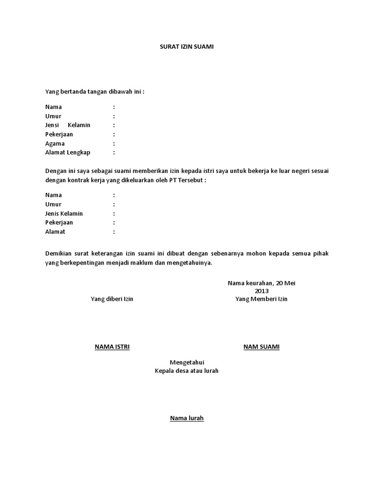 Contoh Surat Izin Suami Egtukar - lasopaeazy