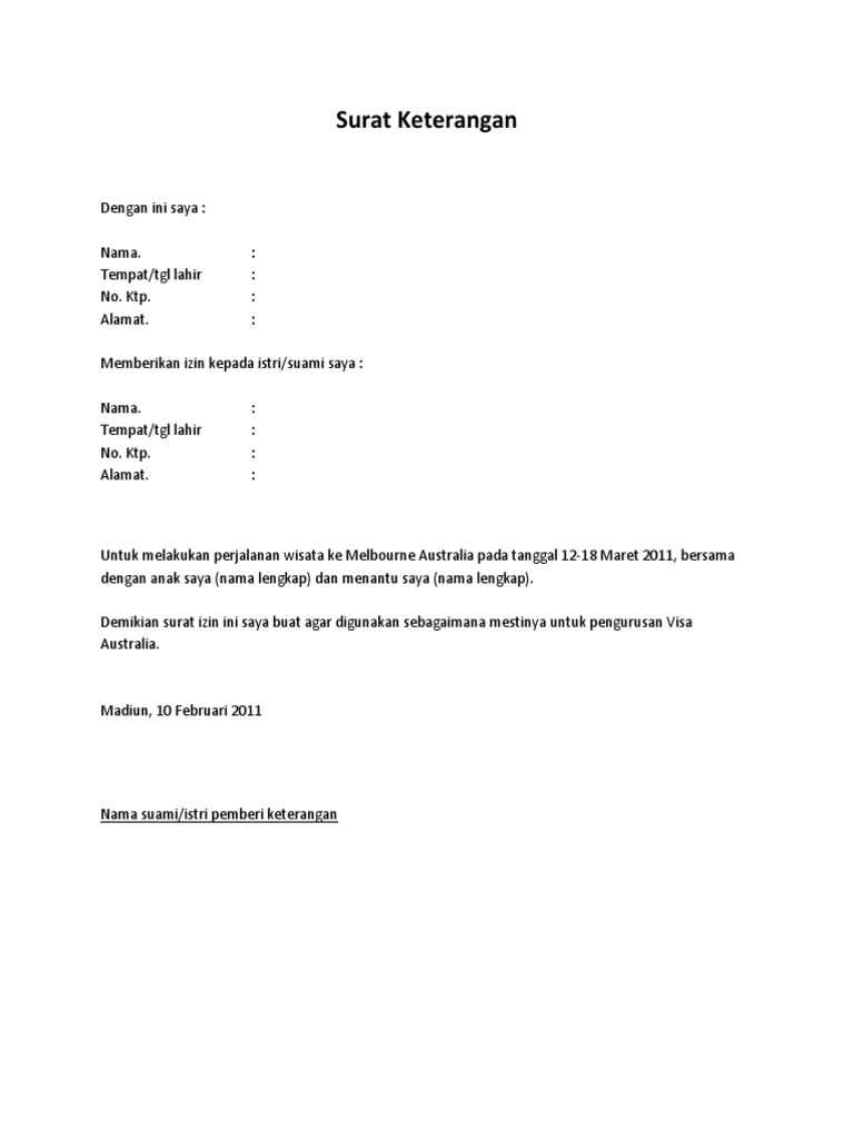 Contoh Surat Izin Suami Visa - Download Kumpulan Gambar