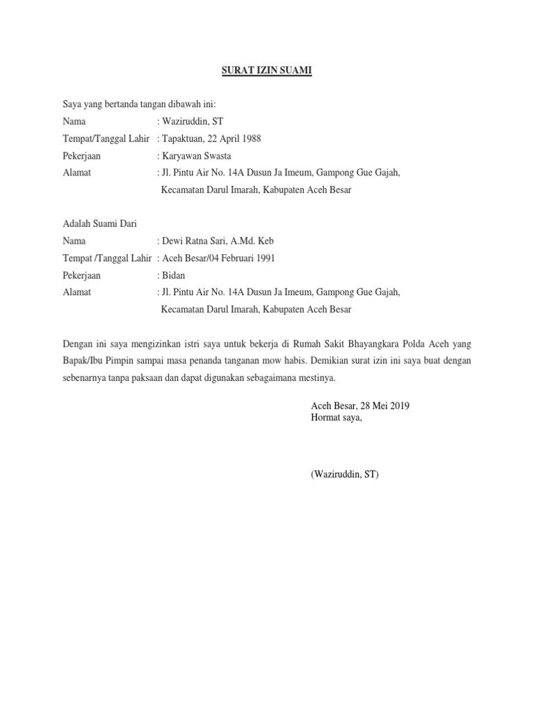 Contoh Surat Ijin Suami Yang Baik Dan Benar - bangtri.com