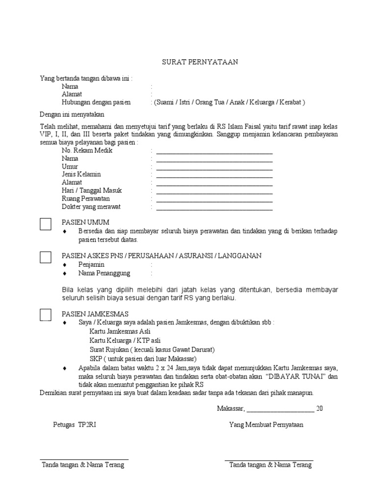 SURAT PERNYATAAN rawat inap .doc