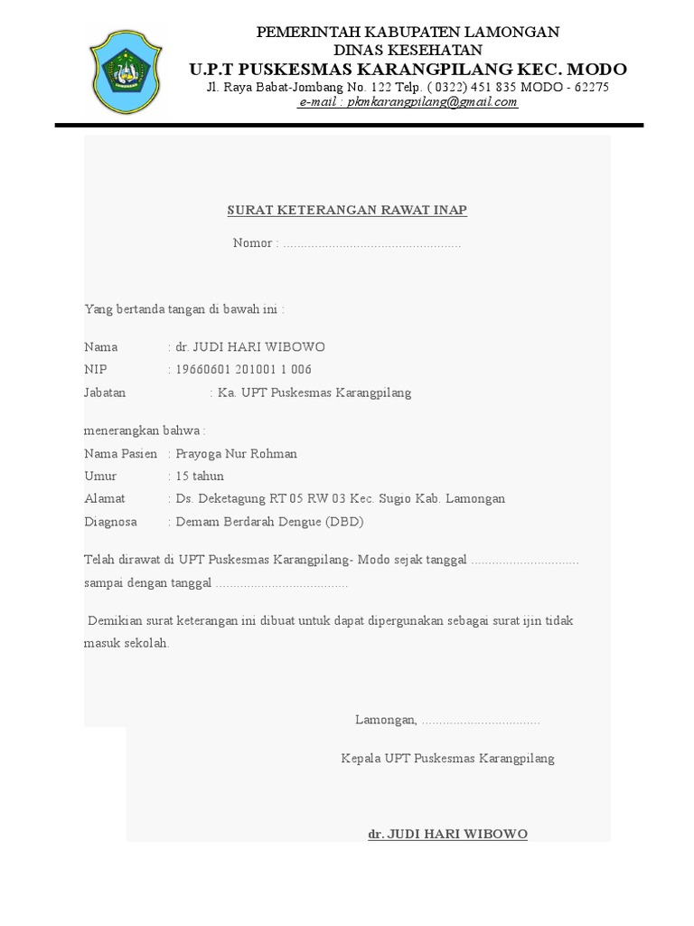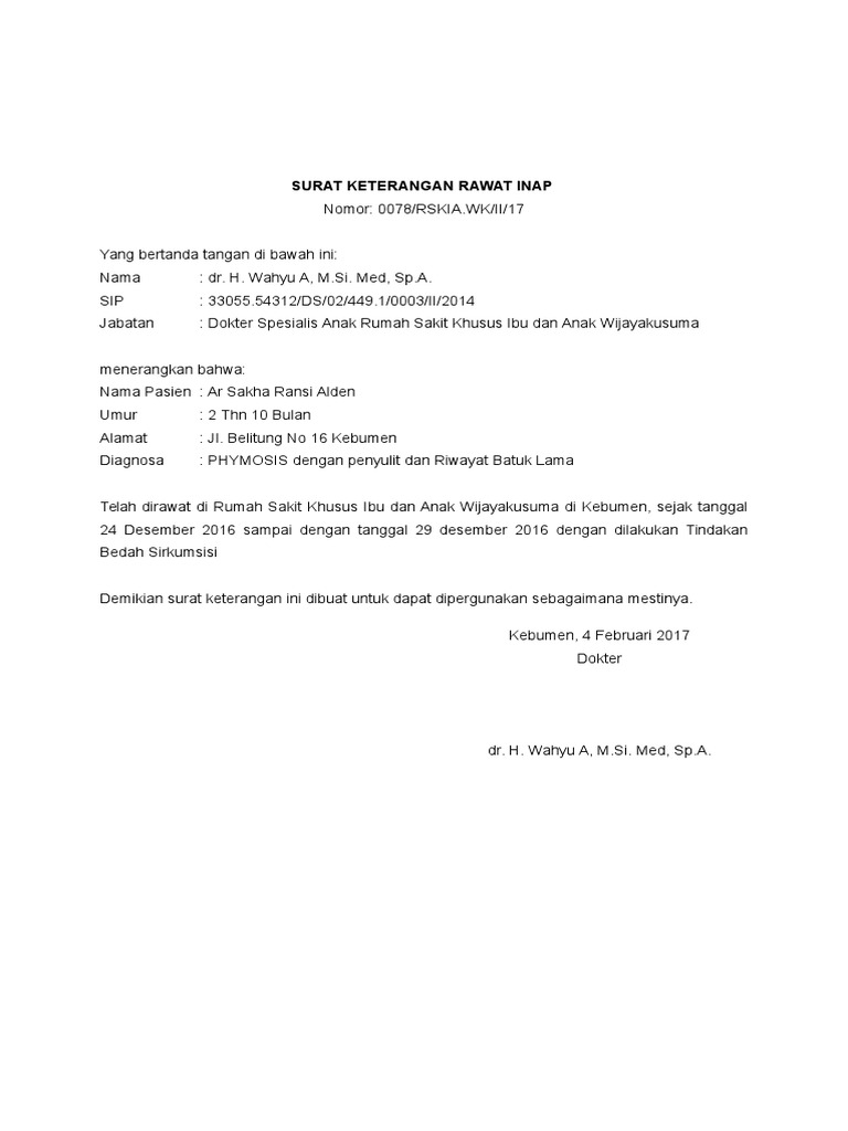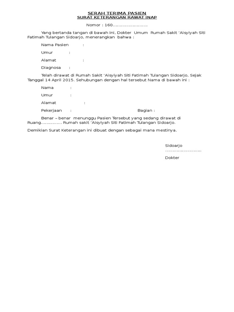 Contoh Surat Keterangan Rawat Inap Di Rumah Sakit - Sekitar Rumah