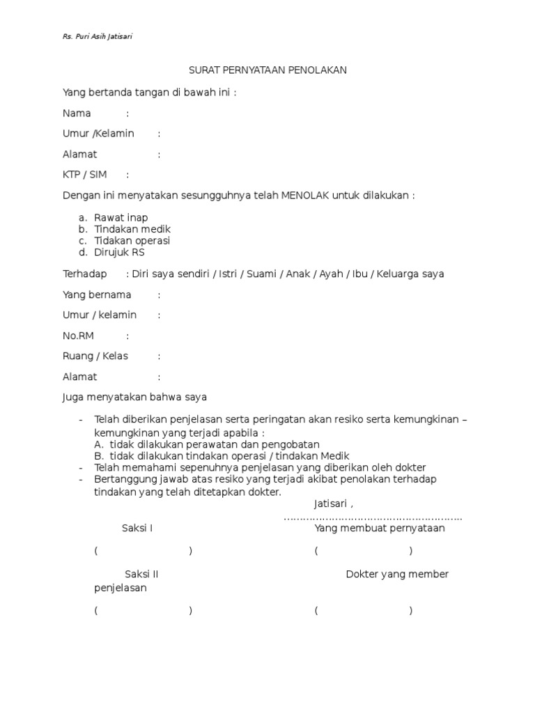 Contoh Surat Perintah Rawat Inap Dari Dokter