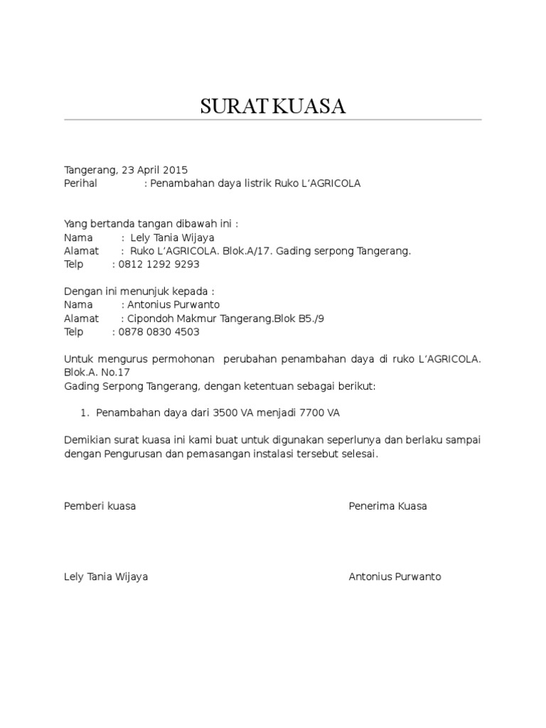 Contoh Surat Kuasa Daya Listrik - Download Kumpulan Gambar