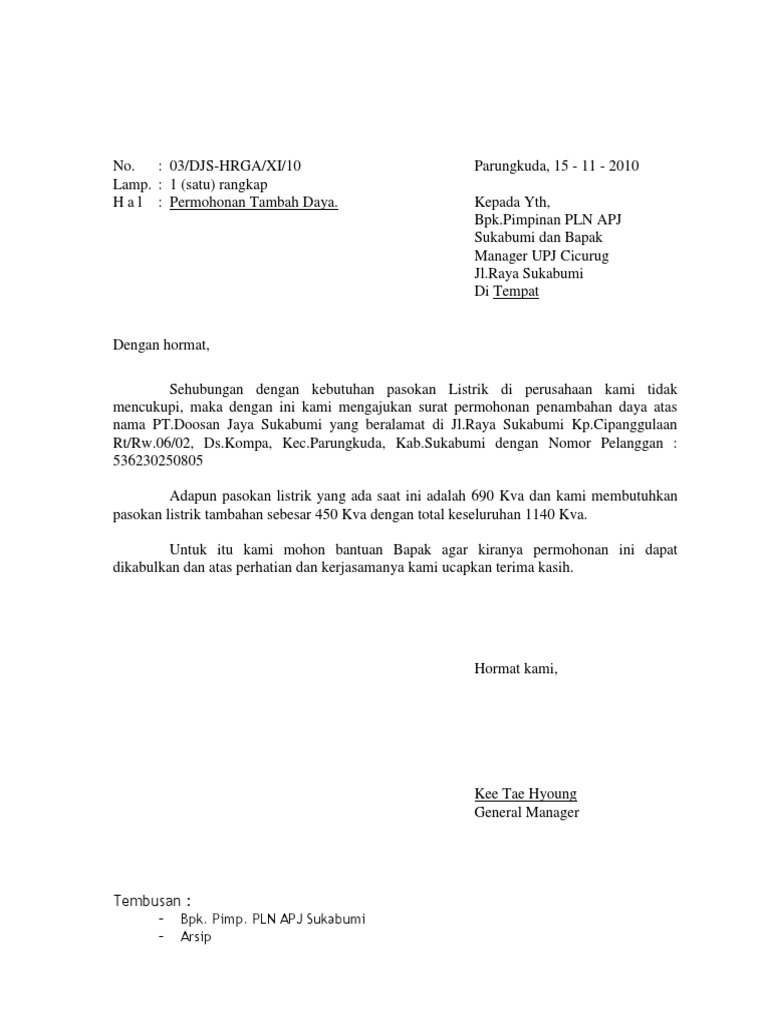 Contoh Surat Permohonan Penambahan Daya Listrik Ke Pln - Kumpulan …