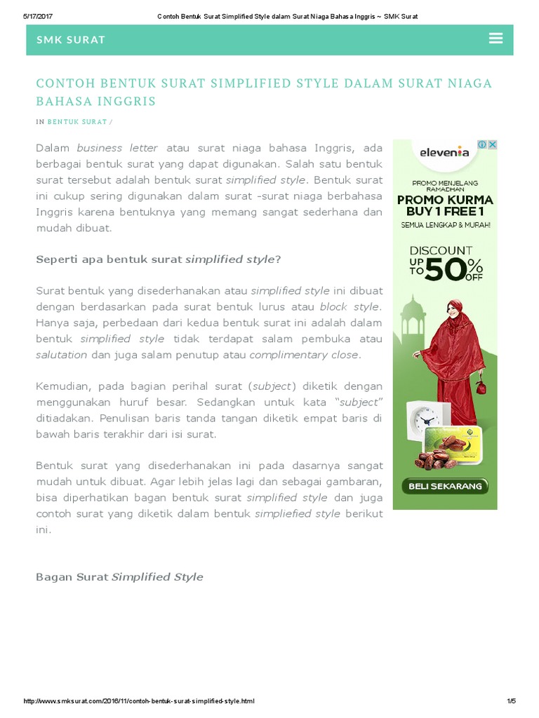 Contoh Bentuk Surat Simplified Style Dalam Surat Niaga Bahasa …