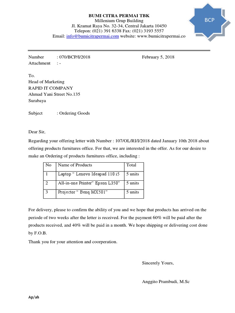 16 Contoh Surat Pesanan Barang, Bahasa Inggris, Elektronik …