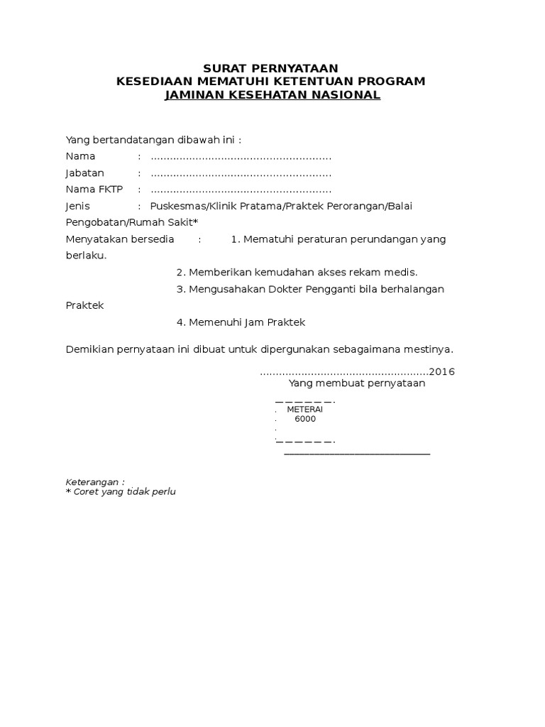Surat Pernyataan Memenuhi Aturan JKN