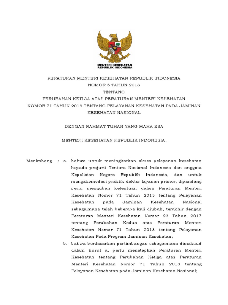 Peraturan Menteri Kesehatan Republik Indonesia Nomor 71 Tahun 2013 te…