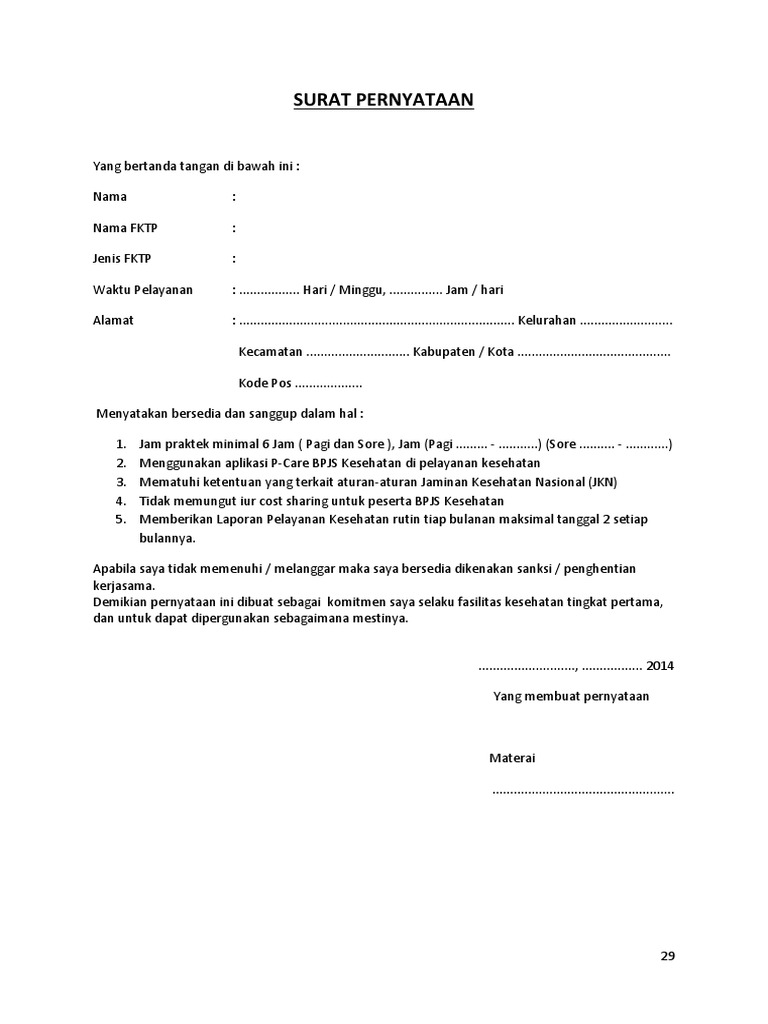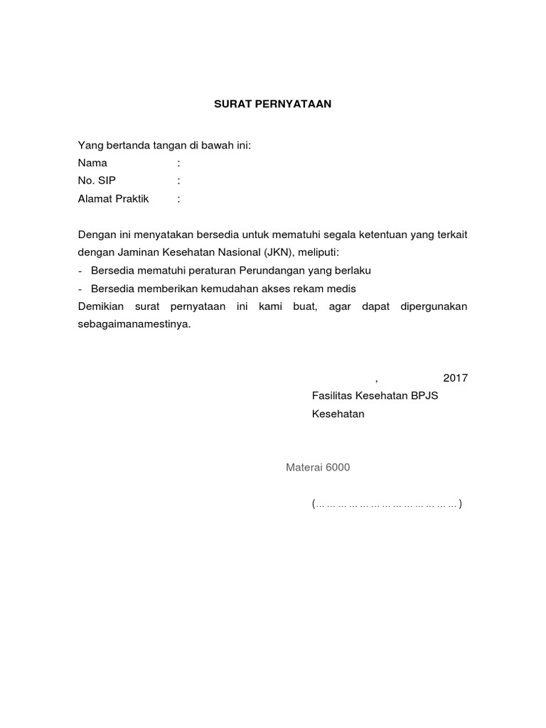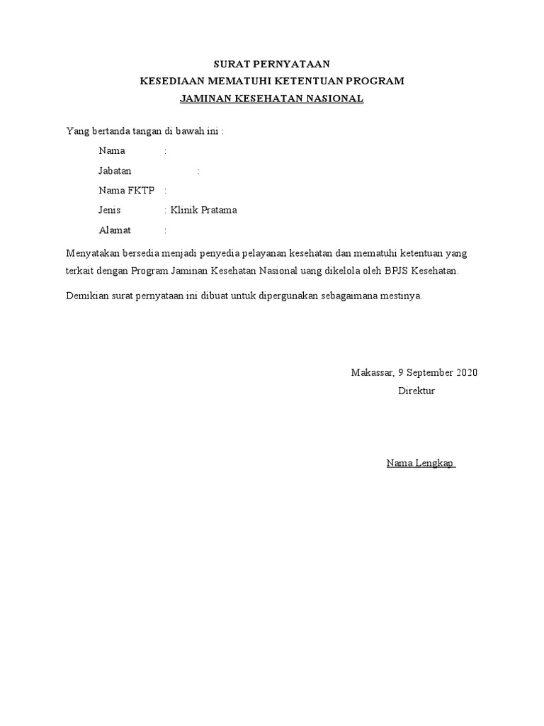 15+ Contoh Surat Pernyataan Kerjasama Dengan Bpjs