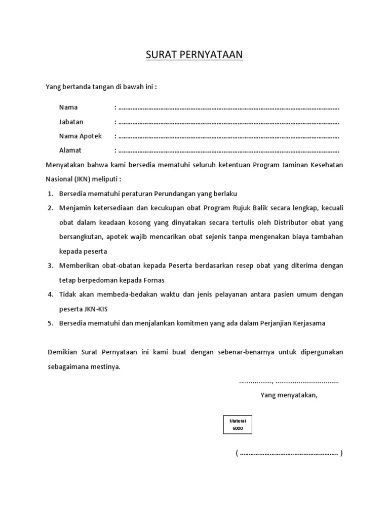Surat Pernyataan Kesediaan Mematuhi Ketentuan Program Jaminan …