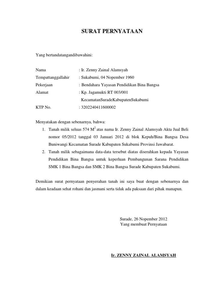 Contoh Surat Pernyataan Hibah Tanah Untuk Kepentingan Umum – ID.Lif.co.id