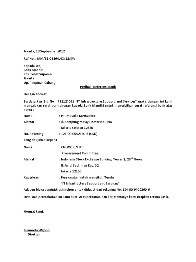 Contoh Surat Permohonan Referensi Bank Mandiri - Contoh Seputar Surat
