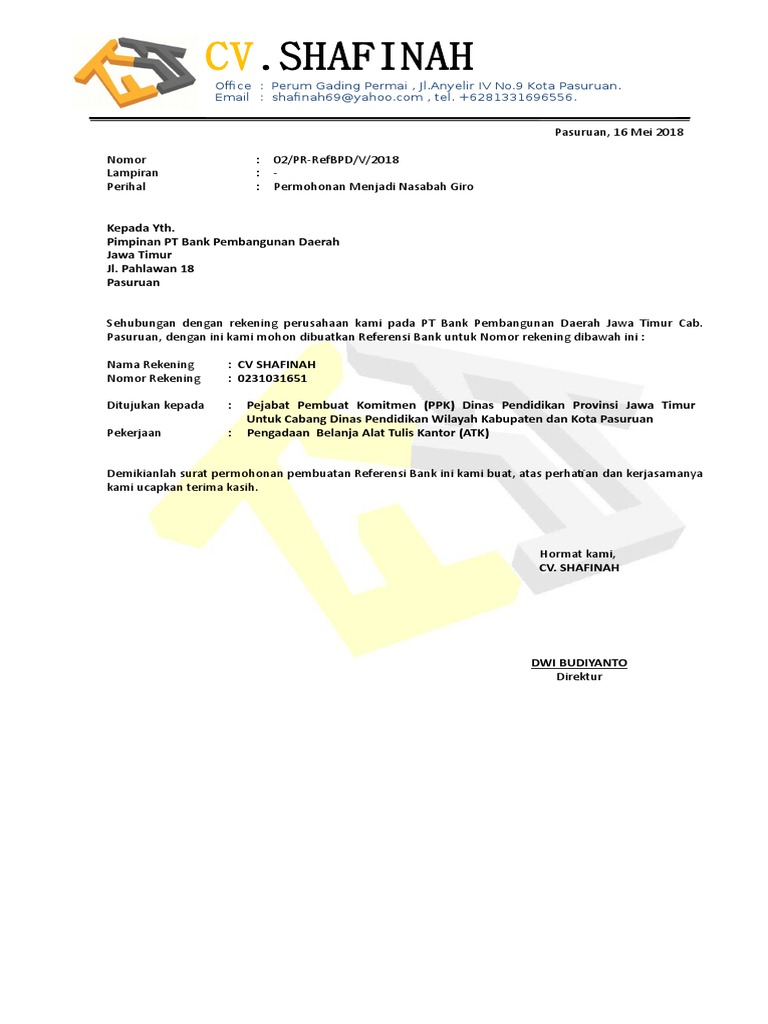 Contoh Surat Permohonan Referensi Bank Jatim Contoh Surat - Cute766