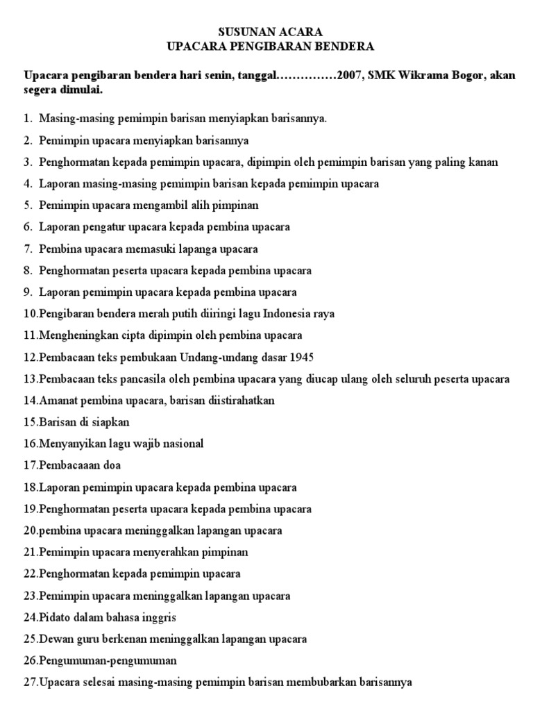 Teks Upacara : Contoh Susunan Upacara Bendera Hari Senin Di …