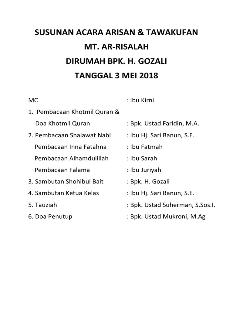 Susunan Acara Arisan Dan Tawakufan