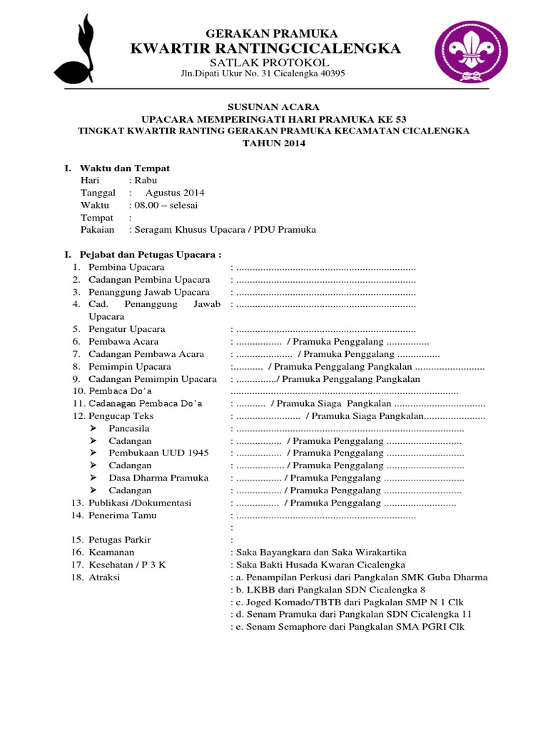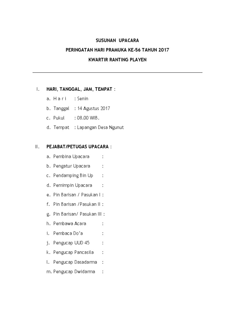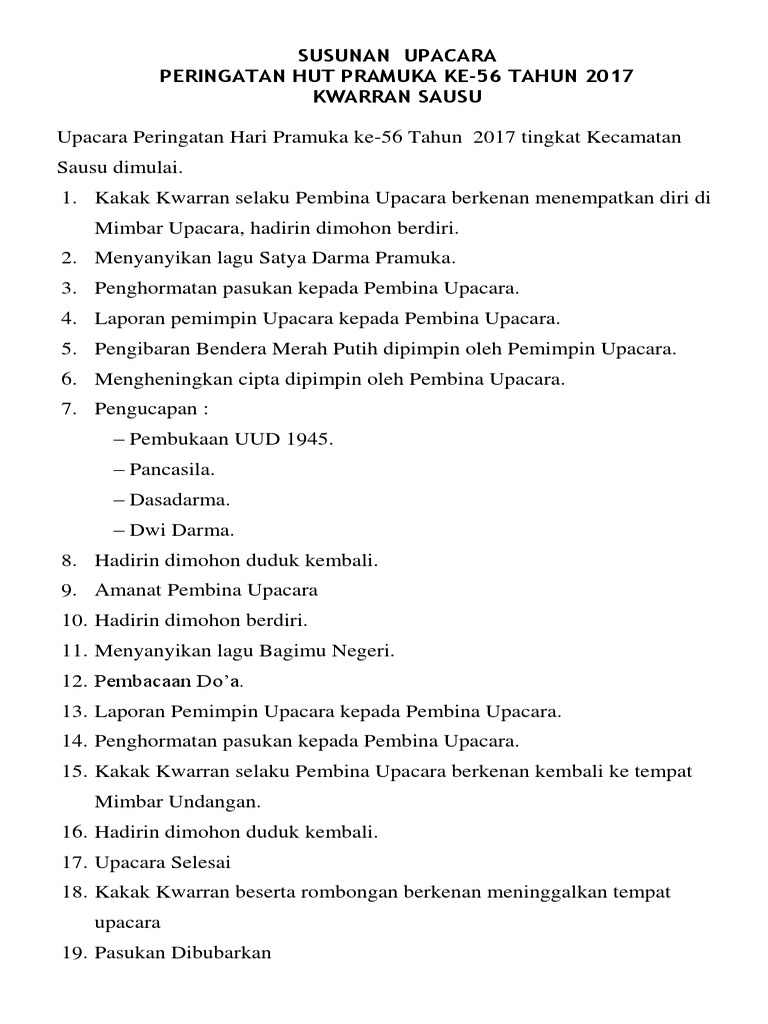 Susunan Acara Upacara Peringatan Hari Ulang Tahun Pramuka (HUT …
