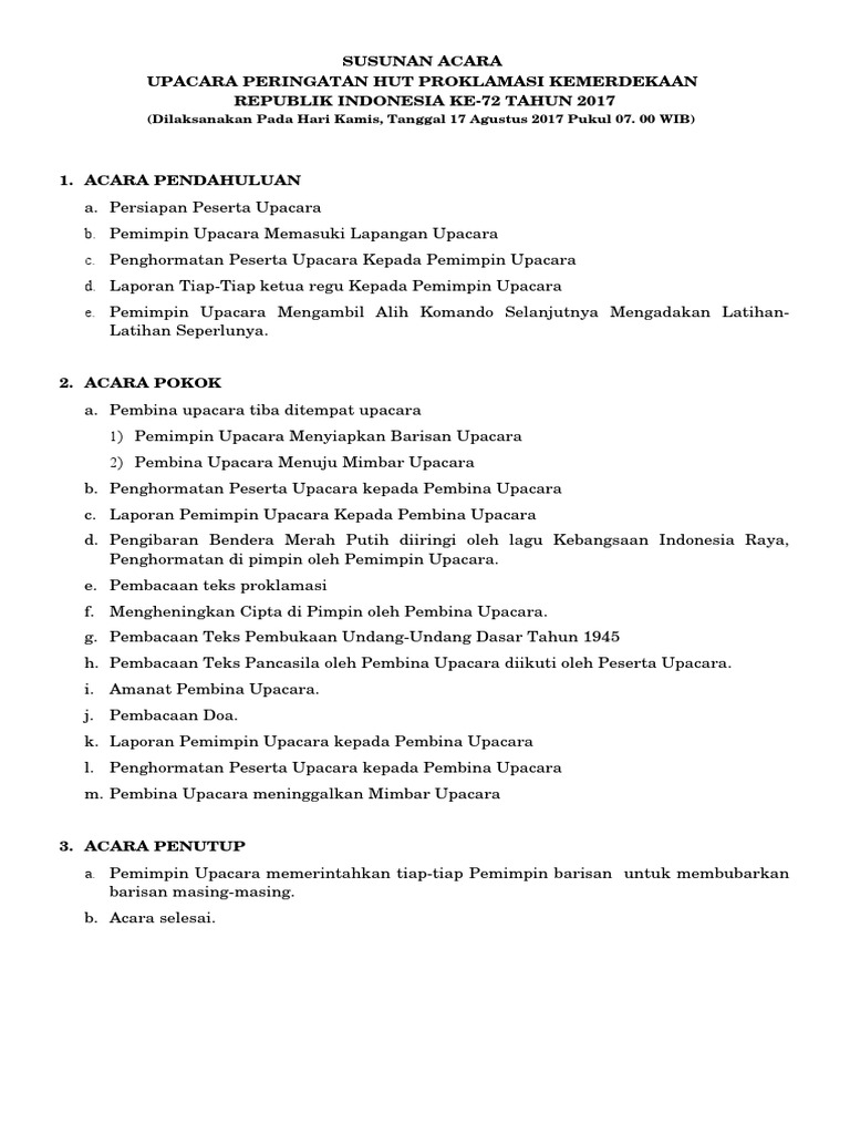 Susunan Upacara Hut Ri Ke 73 - Nusagates