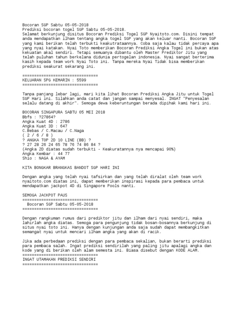Bocoran Sgp Prediksi Togel Singapore Hongkong Angka Jitu Syair Sydney