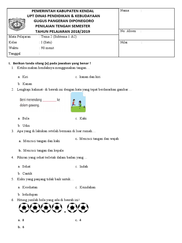 Lengkap - Contoh Soal UH / PH untuk kelas 1 SD/MI Tema 2 Subtema 2 …