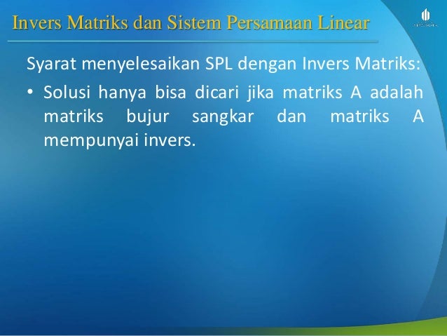 INVERS MATRlKS TERG MPM 31-03 MUD I.pdfpersamaan linier Ax = Y …