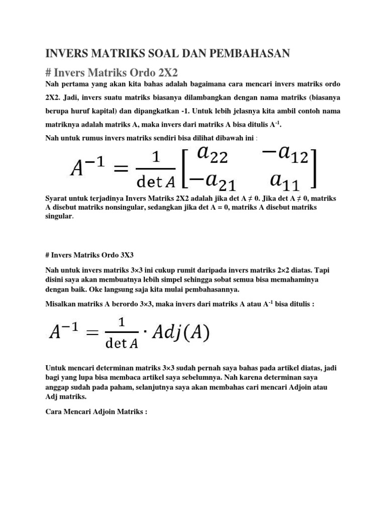 Rumus Invers Matriks Matematika SMA Dan SMK - [PDF Document]