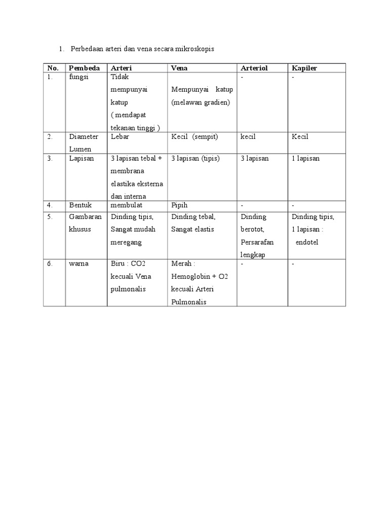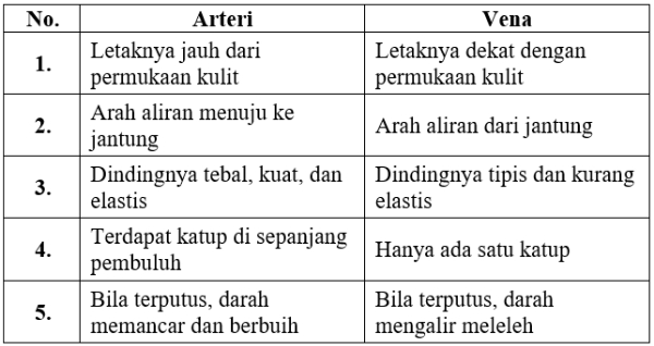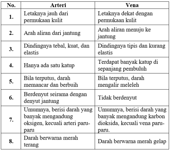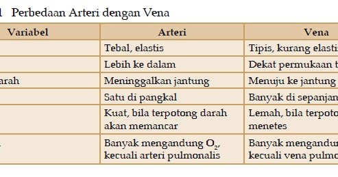 Buat tabel yang menjelaskan 6 perbedaan antara pembuluh vena dan arteri. - Blog Pak Pandani