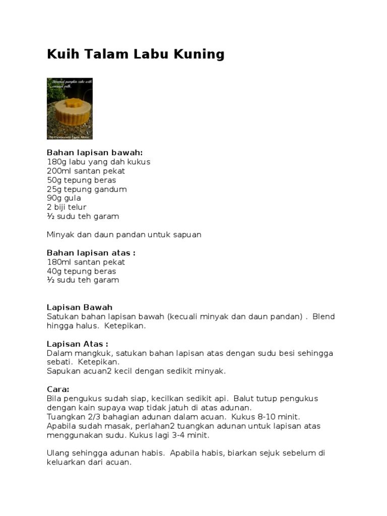 RESEPI KUIH TALAM LABU Bahan Lapisan… - Resepi Kuih Talam | Facebook