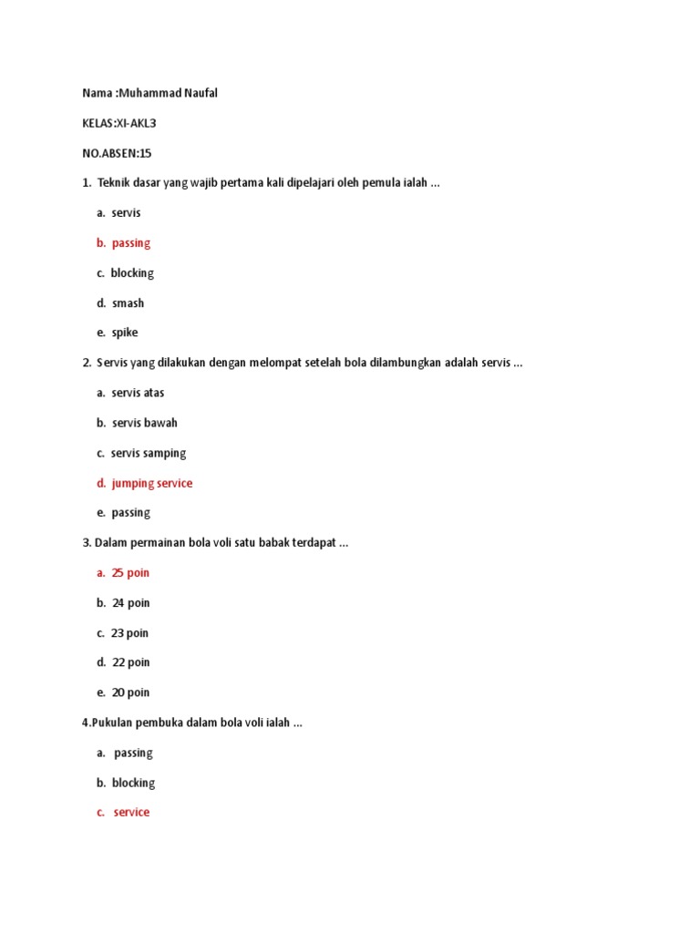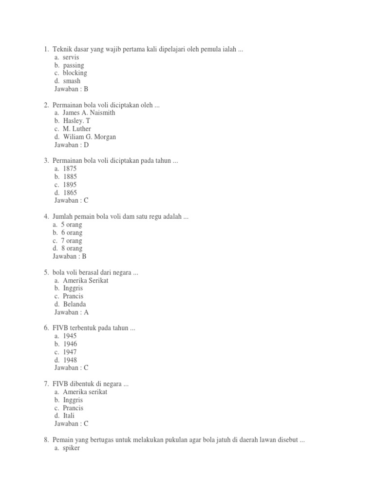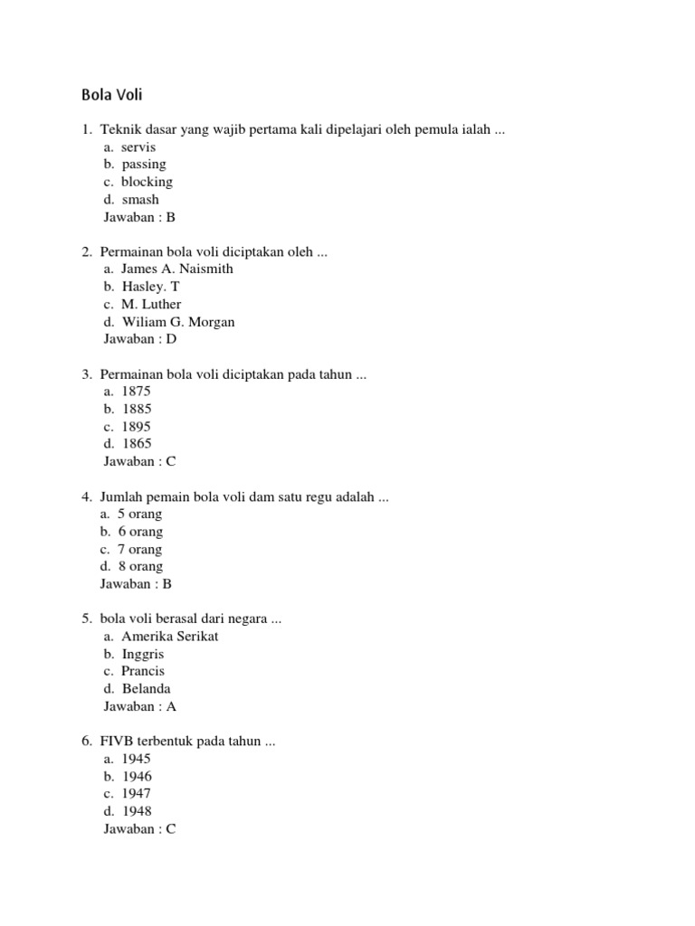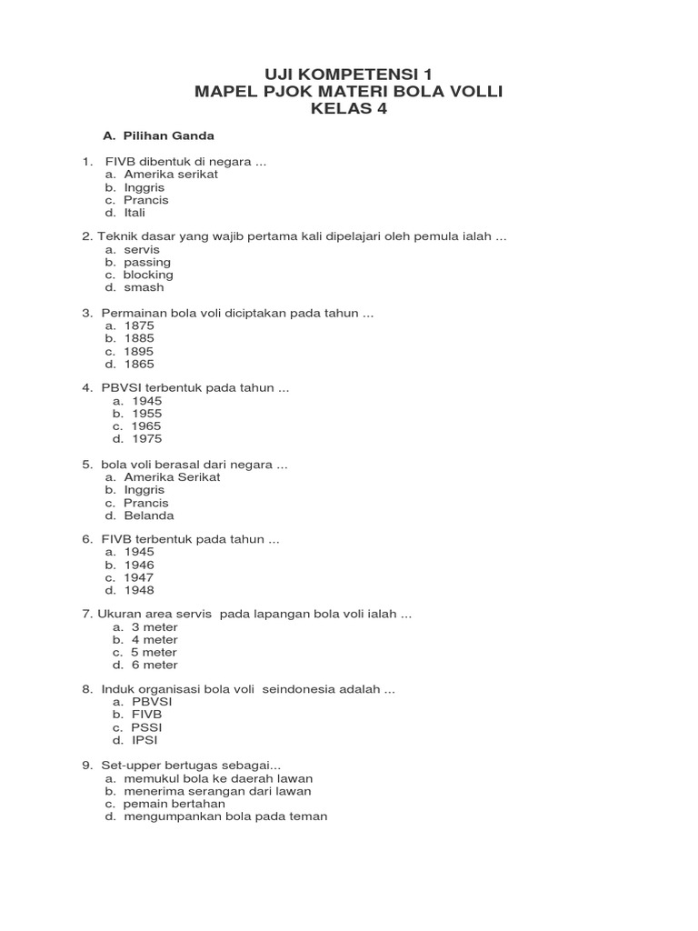 Soal Bola Voli Beserta Jawabannya - Manglada Tech