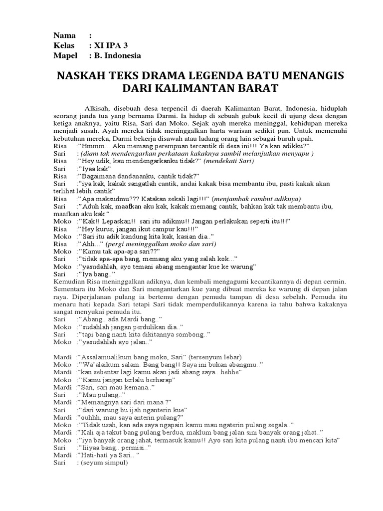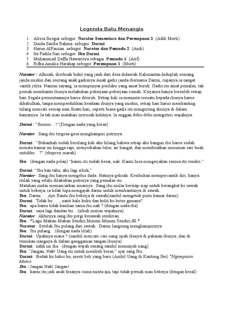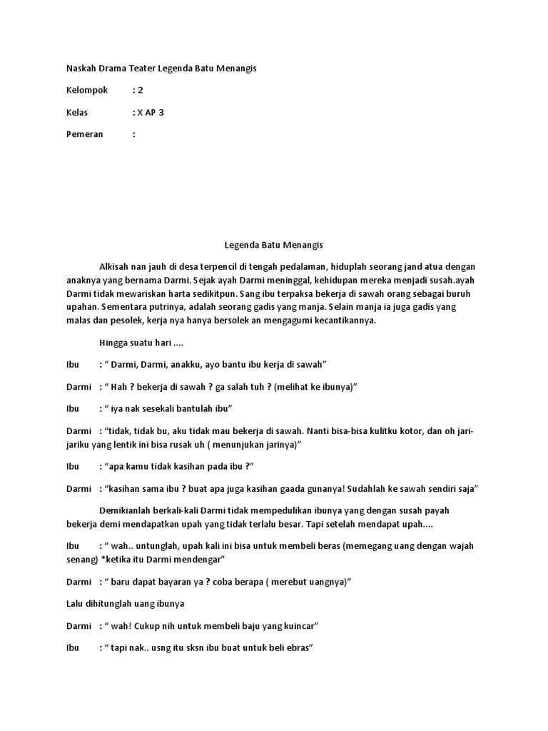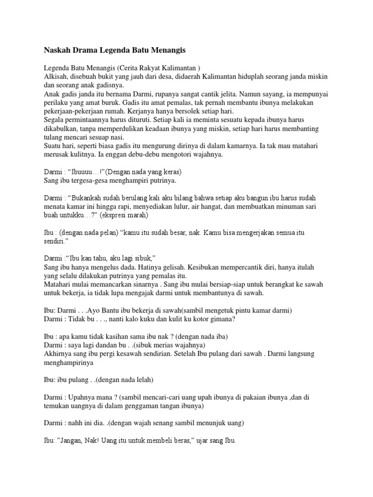 Naskah Drama Legenda Batu Menangis - Evanophone