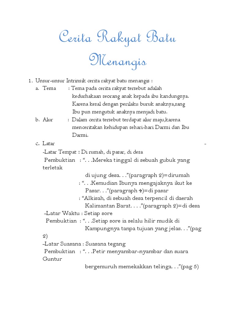 tentukanlah struktur cerita Legenda Batu menangis - Brainly.co.id