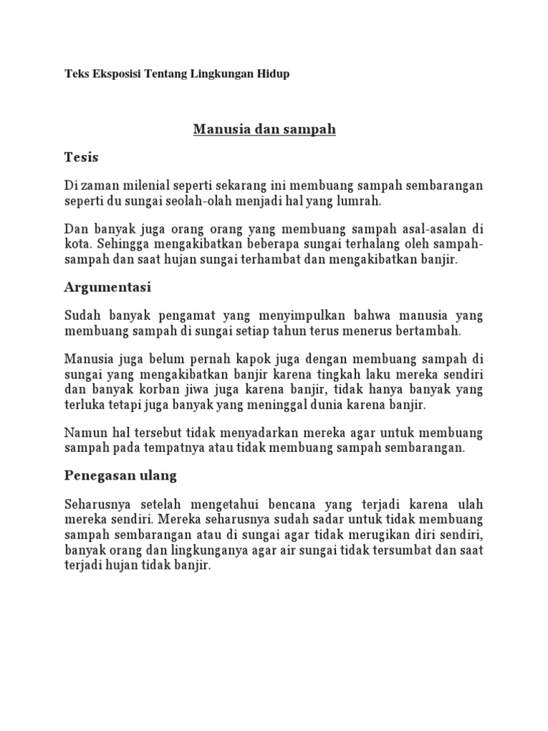 Contoh Teks Eksposisi Tentang Lingkungan Hidup Tesis Berbagai Teks Penting – Resep Kuini