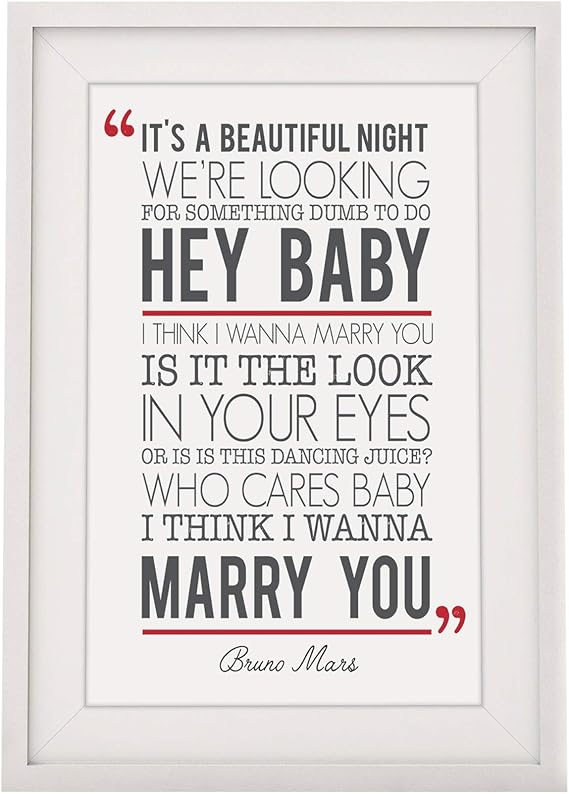 Bruno Mars Marry You Song Lyrics Gift - Framed Print With Mount - 12 x 10 Inch - Design 2: Amazon.co.uk: Garden & Outdoors