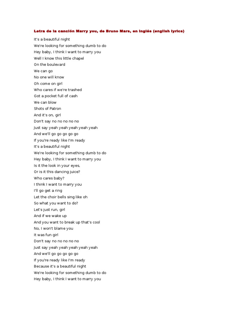 ENGLISH SONG LYRIC - BRUNO MARS-MARRY YOU - Wattpad