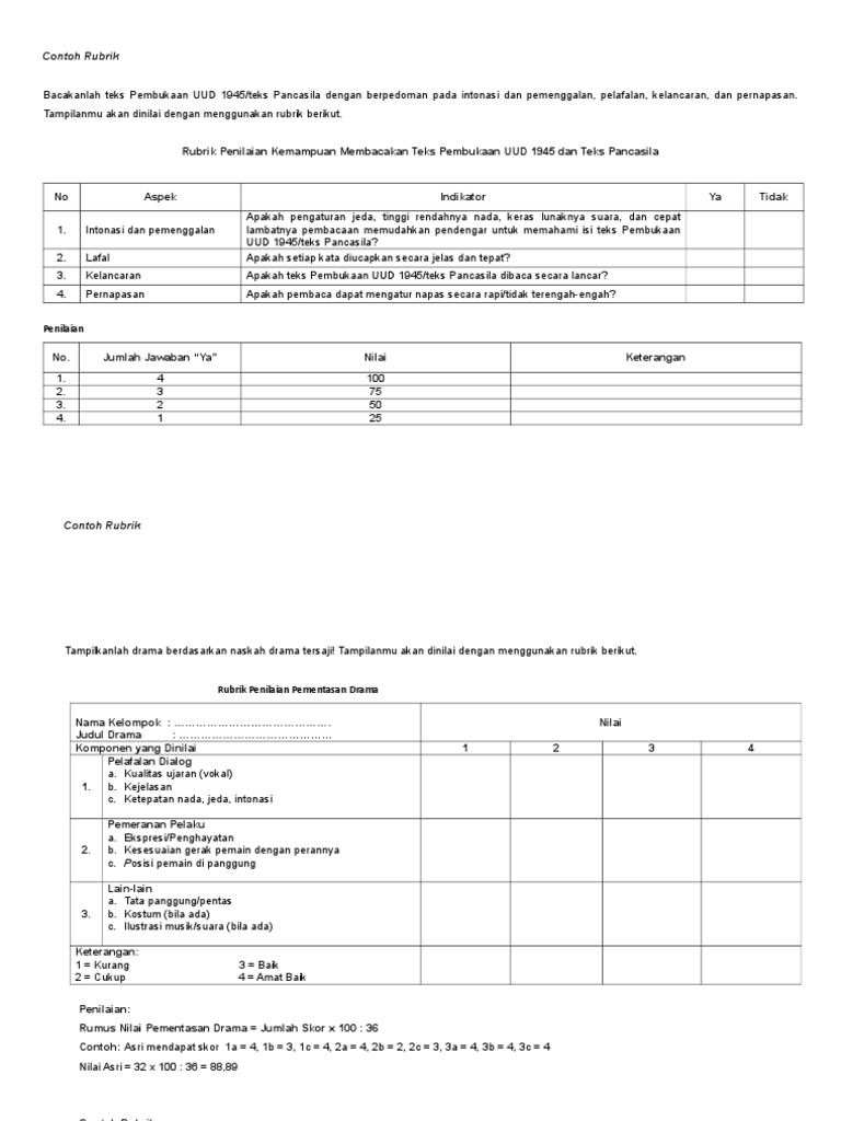 Contoh Rubrik: Rubrik Penilaian Kemampuan Membacakan Teks Pembukaan UUD 1945 dan Teks Pancasila