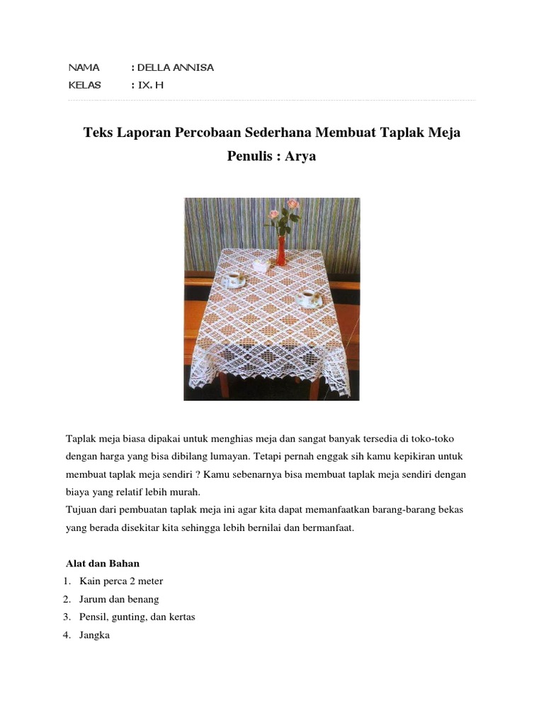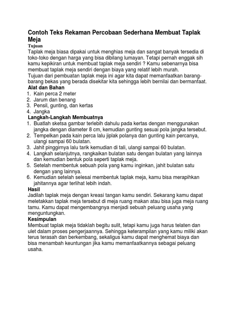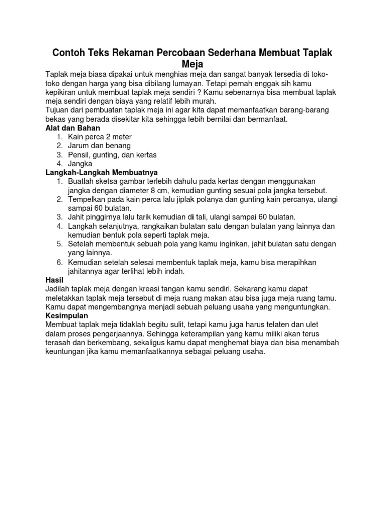 Contoh Teks Rekaman Percobaan Sederhana Membuat Taplak Meja